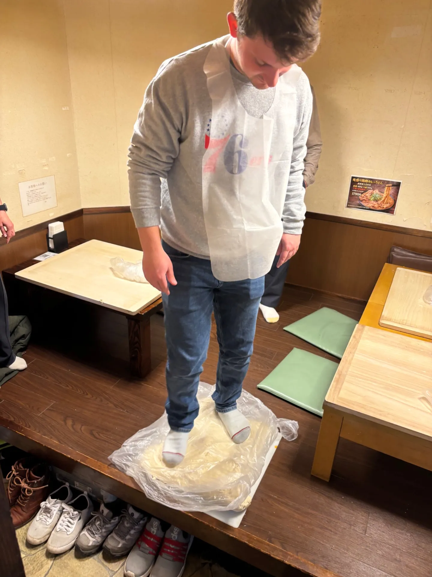今回の体験では、まず うどん生地作りからスタート。