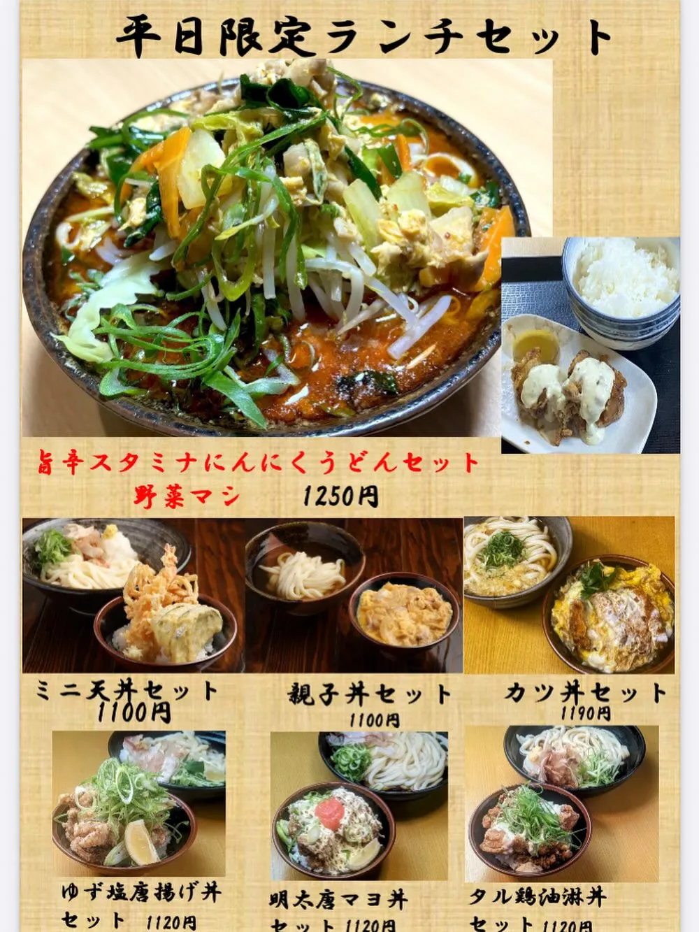 ▶️ 旨辛スタミナにんにくうどんセット(野菜マシ)